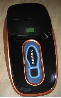 That welds a plastic film around shoes; it has been developed for hospitals, clinics, laboratories, food manufacturing plants and similar areas,